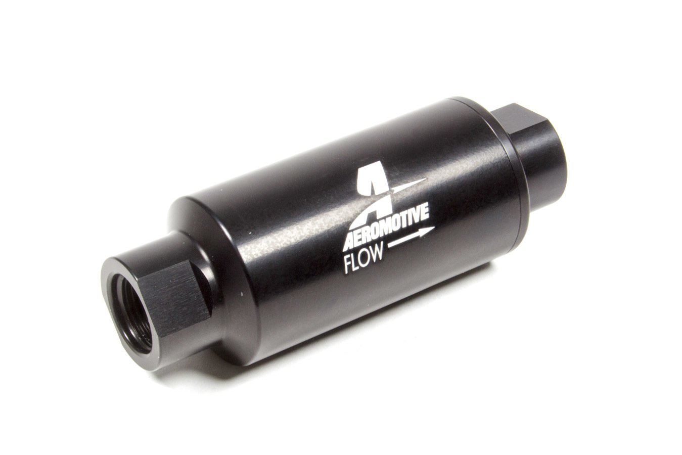AEROMOTIVE – Filter Element – Fuel Filter – In-Line – 10 Micron – Microglass Element – 10 AN Female Inlet – 10 AN Female Outlet – Aluminum – Black Anodized – Each