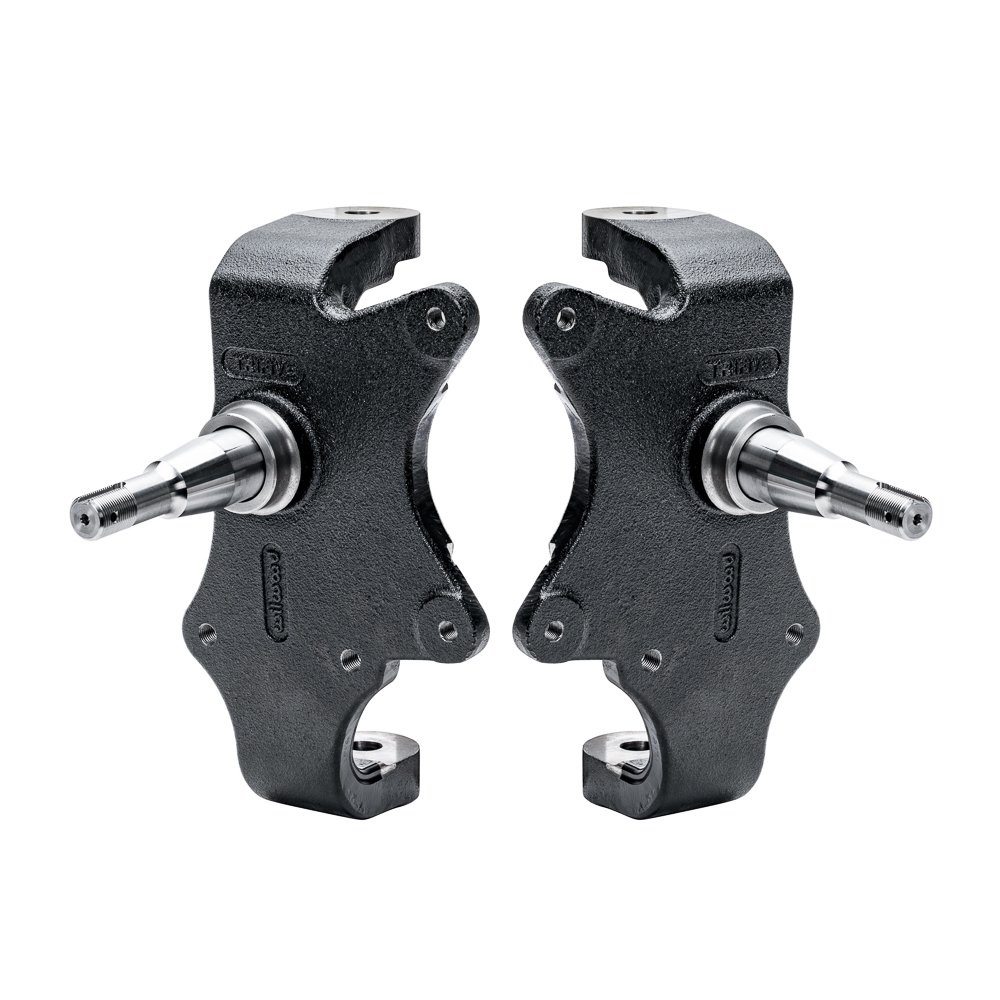 KIT SPINDLE TRI FIVE PRO SPINDLE CHEVY WILWOOD Spindle – 2 in Drop Spindle – Driver / Passenger Side – Steel – Black Paint – Chevy Fullsize Car 1955-57 – Pair