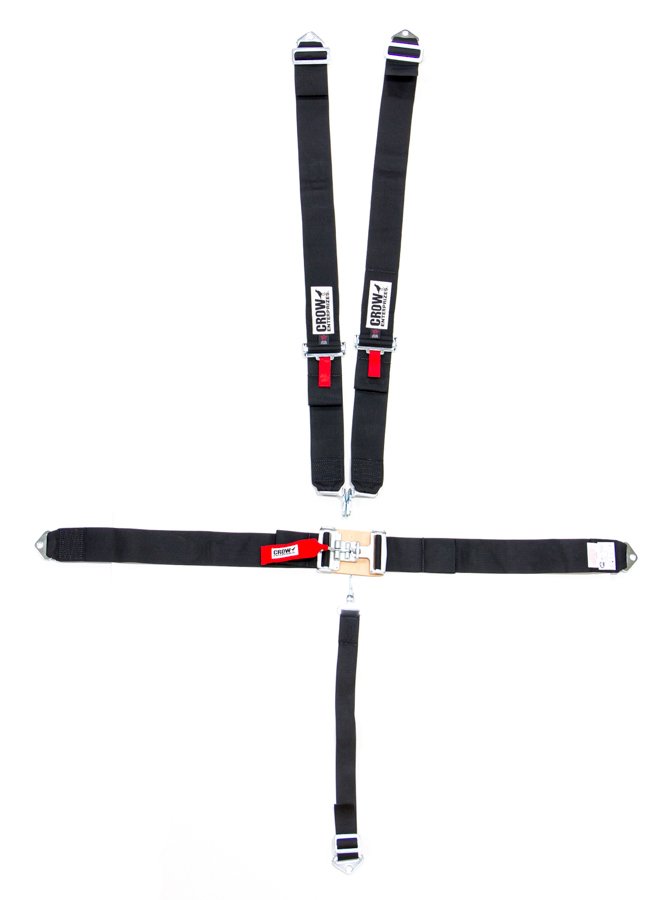 5-Pt Harness Big Latch Blk Bolt In Pull Down CROW SAFETY GEAR Harness – 5 Point – Latch and Link – SFI 16.1 – 55 in Length – Pull Down Adjust – Bolt-In / Wrap Around – Individual Harness – Black – Kit