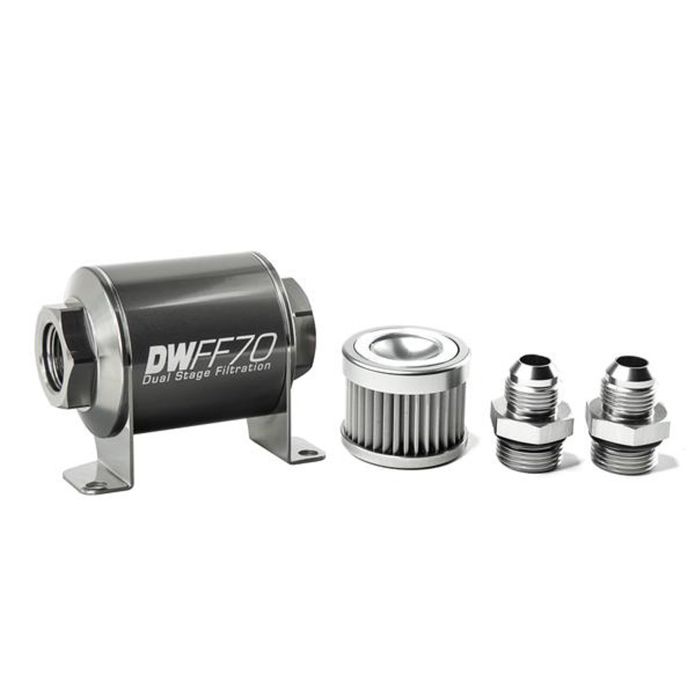 In-line Fuel Filter Kit 8an 10-Micron DEATSCHWERKS Fuel Filter – In-Line – 10 Micron – Stainless Element – 8 AN Male Inlet – 8 AN Male Outlet – 70 mm Long – Aluminum – Titanium Anodized – Each